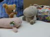 ひあ〜 東京のねむり君・ピンクちゃんと数分の入れ違いでまたまた東京からお客様が・・・・ブタの兄弟,ブーチャ君とブー太兄です。長旅お疲れ様でした。今朝,東京を出て来てくださったそうですね。ありがとうございました。まだしばらく順番来ないし,ちょっと待っていてくださいね。オネイサン,フェルトのご送付お願いしますね。