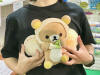 ぐふふ。ビーちゃんのバッジはケアベアさんなの♪ ええと、オカアサン、カメ子さんの甲羅は6枚接ぎの型紙2枚で済みましたので、2100円×6-(700×(6-2))という計算になりました・・・のですが、やはりギャザーに独特な構造があり、すっかり元のようにとはならないようです。見た目にはほとんど影響しませんが、甲羅の円周とオナカの円周をぴったり合わせるのに、甲羅のつなぎ目で調整させて頂きますね。(どうやら、古い甲羅は裂けてきたところが多少伸びてしまったようで、型紙もちょっと大きくなってしまったのです)