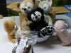 さっそく診察しましたが、20歳と15歳と聞いて、あら〜 もしかしてパンヤ綿なのかしら・・・と思ったら、二人とも白いポリエステルの綿でした。中で凝り固まってはいましたが、固まったままツルンと出てきて取り出しやすかったです。ただし、ちょっと黒くなりすぎのようですね・・・ おミミもだいぶ色あせて黒から青っぽくなってきていますので、白い部分も汚れというよりも、色あせかもしれませんが、ふだんの生活環境はどんなんでしたでしょうか。最近、色あせ・蛍光染料の色あせにより、ビ白しても白くならない、汚れているわけではないという事例が立て続けにありました。東京都練馬区のミッフィーちゃんhttp://sewing.dobashi.jp/nuigurumi/2010/?mode=res&no=103387愛知県小牧市のうさちゃんhttp://sewing.dobashi.jp/nuigurumi/2010/?mode=res&no=103577もしかするとこちらも・・・東京都新宿区のシロ兄くんhttp://sewing.dobashi.jp/nuigurumi/2010/?mode=res&no=103697いずれも、手垢などではなく、比較的気をつけてお手入れされてきたにも関わらず、くすんだ感じが残ってしまった事例です。それにしても、この「つむじ」は、珍しい症例で・・・どういう原因でできちゃったのですか? ◆注意事項 ◆ビーちゃんの子分♪ビビビ光線躾済み