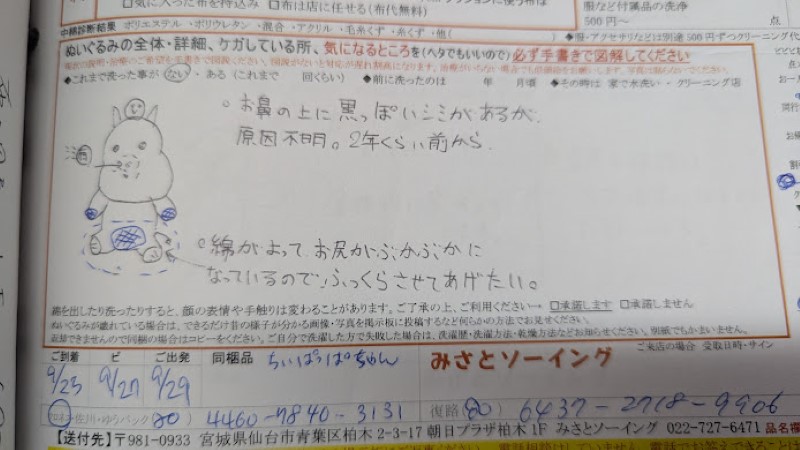 わー なんと、今回と同様に「綿がよって、オシリがぶかぶかになっているので、ふっくらさせてあげたい」とのご依頼でした〜