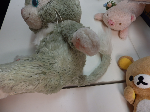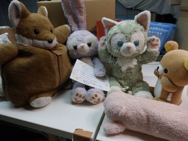しっぽ付け直し500円、ビーズ袋・両足(20gずつ)1000円、足の爪糸(寸胴足補正)処置・両足1000円、おヒゲが取れてしまうために縫い付け(4カ所)800円、綿交換は6000円です。