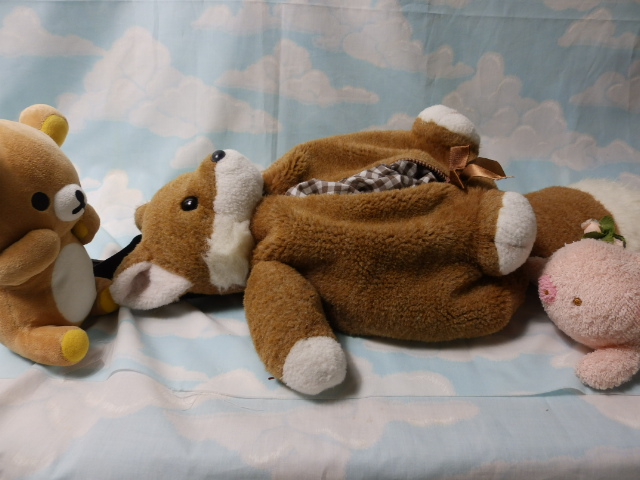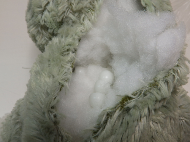それと、ジェラ君ともえちゃん共に、中綿はアクリルのように見えました。すでにゴツゴツしているので再利用には不向きですので、綿は交換する予定です〜