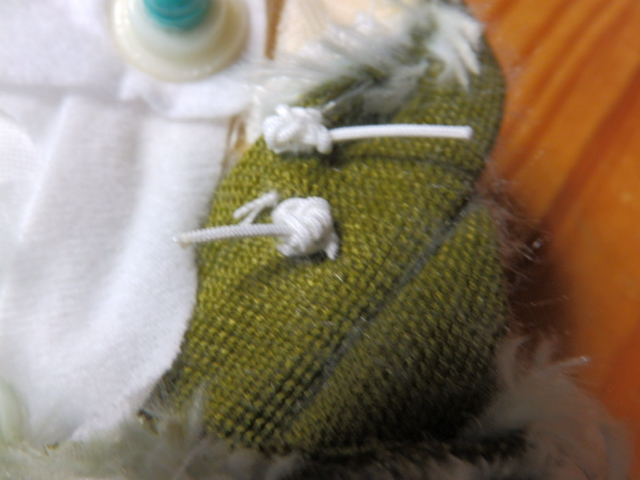 あとは〜 おヒゲは一度抜けてしまったのでしょうか? 固定されていないので、しっかり縫い付けて固定したほうが良さそうです。
