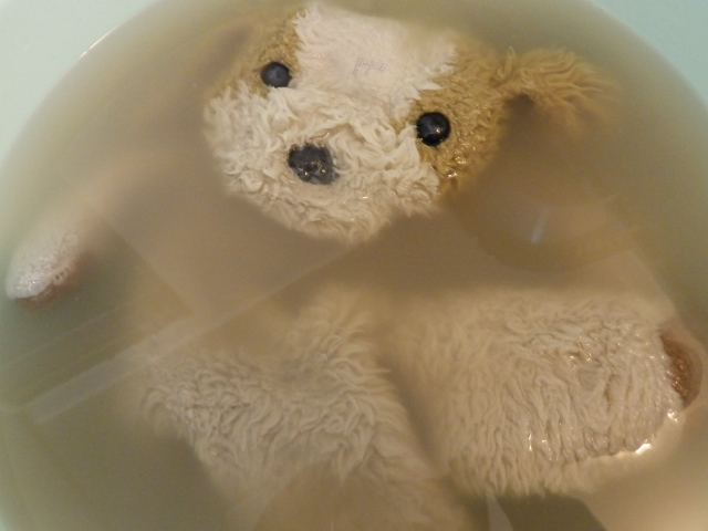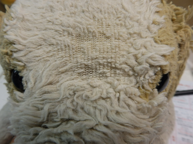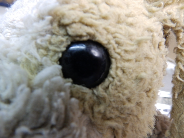 はい、承知しました。では、オメメは研磨することにしますね。同じ大きさの黒いオメメがあるのですが、ロバートくんは軸受タイプ、当店にあるのは引っ張り糸タイプで、ちょっと違う仕上がりになりますので、従来のオメメを研磨で進めます。