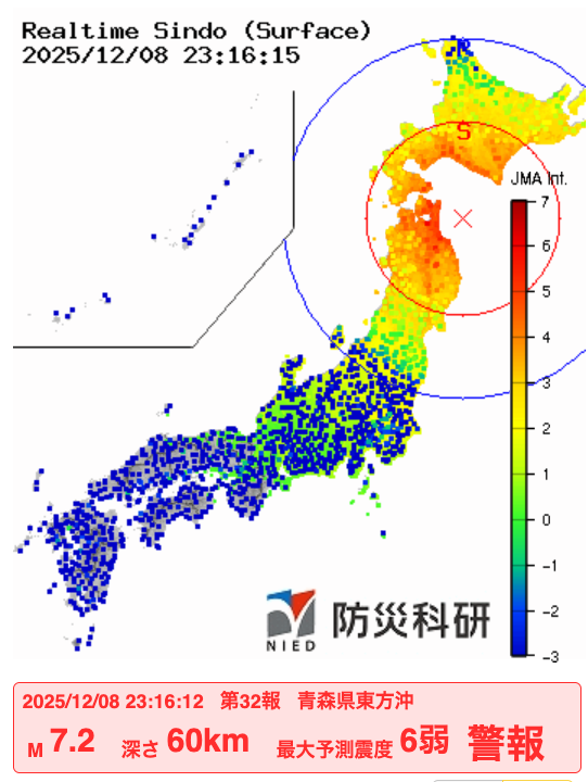 緊急地震速報 2025/12/8 23:16 投稿者:番頭たま 投稿日:2025/12/08(Mon) 23:46 No.251831 RES