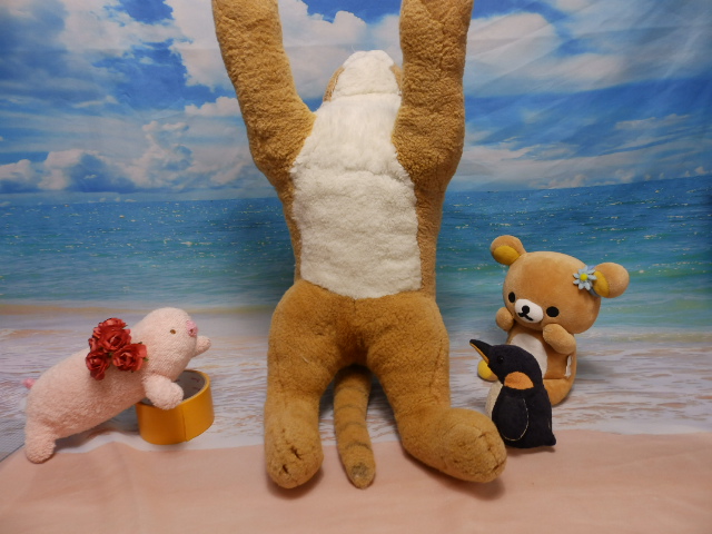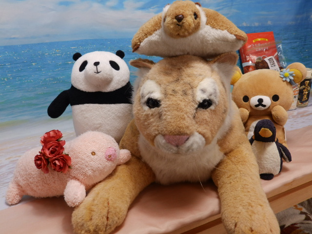 ひあ〜 栃木県宇都宮市から、くまのだっふぃー君、くろいだっふぃー君、そして猫のジェラー隊長さんがやって来てくれました。長旅お疲れ様でした〜そういえば昨年も宇都宮市からジェラ君が来てくれたわね〜(ご親戚なのかしら・・・)だっふぃー君とくろいだっふぃー君は、2016年に当店に来てくれましたね。 #166117 わぁ、もう10年前ですね。その頃はウォンバットのウォンビンがお相手させて頂きました。今回はたまとサラミちゃんがお相手しますねー オミヤゲもアリガトゴザマス〜どうぞゴロンしてお待ちくださりー ◆掲示板に画像を投稿したい・投稿できない・リサイズってなーに?