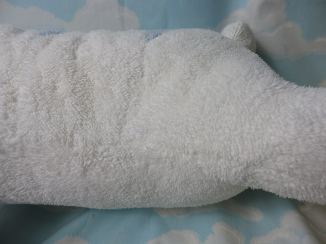 では、さっそくオフロへどうぞ〜つきさんは35cm/104gでした。けっこう「長さ」ありますね。やんちゃな感じがかわいいです。綿入れ口はアゴの下で、胴体と頭部の間に仕切り布あり。手足の付け根の綿はどうしても減りやすいのですが、つぶつぶ綿への交換で偏りが解消されるでしょう〜オフロ2700円、基本ピーリング1300円、ビ白スカ湯1300円、綿交換2500円、小計7800円です〜 ◆掲示板に画像を投稿したい・投稿できない・リサイズってなーに?