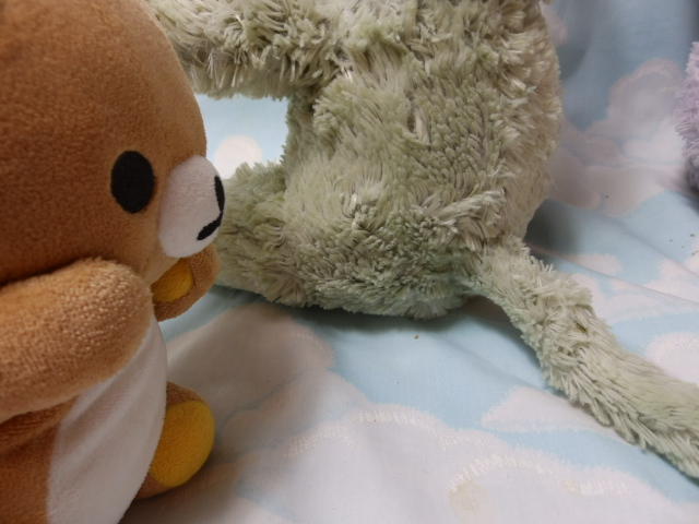 先日はお世話になりました。無事帰宅のお祝いに甘いものスキーのジェラもえをアフタヌーンティーに連れて来ました。こんこんさんは自宅警備員として、ベッドで、すやぁ〜してました。友人曰く『ジェラちゃん太った?』と言われましたが、多少肥ましい方が元気な証拠です。これから痩せていってしまうと思います。お尻尾の位置もちょうどよくズボンがピッタリと穿けました。友人宅のダッフィーのJr.君(同じくスケルトン入り)もお風呂と痛風(足の爪部分の糸が切れている)の治療を望んでおりますので近々お伺いすることになりそうです。その節はよろしくお願いします。本当にありがとうございました。 ◆掲示板に画像を投稿したい・投稿できない・リサイズってなーに?