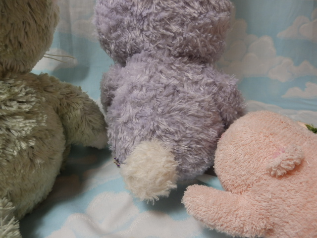 せんぢつ、むつ市から「ねこ君」が健康診断に来てくれました。遠くからはるばるありがとうございました〜パイル地の背中に穴が空いてしまって、これをなんとか修復したい・・・というご相談でした。パイル地という言葉が指す布の種類はとても範囲が広いです。全般的には「タオル地のような」ものを指しますが、タオルだってピンキリでいろいろありますよね。それに、綿素材(コットン)が混紡されたタオルは山ほど市販されていますが、ぬいぐるみ素材としての化学繊維100%のタオル地・パイル地となると、その種類はとても種類が少なく限られています。今回は、診断した結果→背中全体の生地を付け替える必要が出てきました。しかし、なかなかぴったりしっくり来る素材を探すことは難しいのが実際のところです。こちらのページではhttp://sewing.dobashi.jp/nuigurumi/repair/案外身近なもので代用できるかも知れない修理材料について、少しお話していますので、どうぞ参考になさってくださり〜ただ、日に日にぬいぐるみが傷んでいると思うので、素材探しはある程度のところで妥協して、早めに型紙をとっておくのも良いかもしれません。それは原型がわかっているうちにする必要があり、例えば、綿(コットン)が入っていてもやむを得ないので、いずれまた適した素材が見つかるまでの間、型紙を作っており、妥協できる素材に置き換えておく、という方法もあります〜素材的にはサラミちゃんと一緒でしたね♪ねこ君とオトモダチのみんな様、よく旅行をするそうですね〜 当店にも来てくれて、どうもありがとう〜 ◆掲示板に画像を投稿したい・投稿できない・リサイズってなーに?
