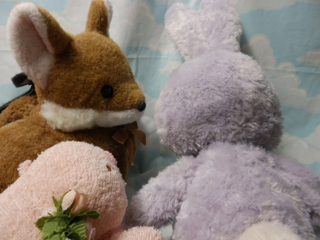 ひあ〜 千葉県船橋市から、キタキツネのこんこんさん、猫のジェラちゃん、うさぎのもえちゃんがやって来てくれました。長旅お疲れ様でしたー プラザでお知らせくださり、ありがとうございます〜http://sewing.dobashi.jp/nuigurumi/2025/?mode=res&no=251003#251239以前は2021年にこんこんさんだけ仙台に来てくれたことがあったのね〜 前回はネズ玉子がお相手いたしましたhttp://sewing.dobashi.jp/nuigurumi/2021/?mode=res&no=210023いろいろ検査項目が多いので、あとでいろいろ教えてくださり〜 とりあえずはゴロンしてお待ちくださりませり〜 ◆掲示板に画像を投稿したい・投稿できない・リサイズってなーに?