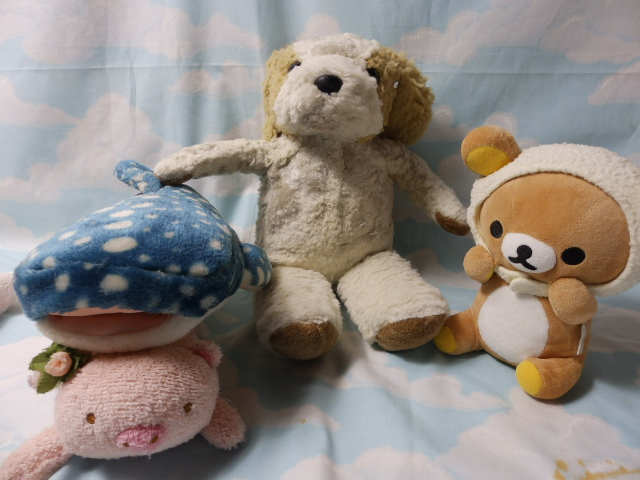 ひあ〜静岡県御殿場市から、犬のロバート君と付添いのジンベエザメ、しべえさんがやって来てくれました。長旅お疲れ様でしたー プラザでもお知らせアリガトゴザマスhttp://sewing.dobashi.jp/nuigurumi/2025/?mode=res&no=251003#251231ヤケドとかハゲランスとか、いろいろ盛りだくさんですね。取り急ぎ、お伝えしたいことは、ハゲランスの毛糸をご持参いただきましたが、ハゲレベルの数え方に多少の間違いがあるようです。それと、オハナの合皮は包み直しをご希望ですよね。合皮はどうしましょうか。 それと、ヤケドの原因について、参考までに教えて頂けるとありがたいです。おふた方とも14年前に仙台のお店に来てくださって以来ですね〜なんておなつかしぅhttp://sewing.dobashi.jp/nuigurumi/2011/?mode=res&no=116339 ◆掲示板に画像を投稿したい・投稿できない・リサイズってなーに?